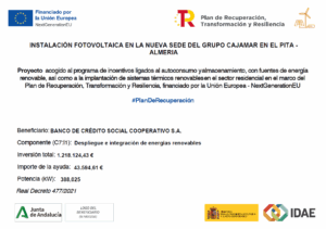 Instalación fotovoltaica en la nueva sede del Grupo Cooperativo Cajamar en PITA-Almería
